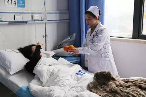 在四川肛肠医院,护士每天都会为患者送去一盘新鲜的水果,有橘子,有香蕉,有苹果,还有梨,五颜六色的水果妆点着病房,清凉的味道带去浓浓的情意。